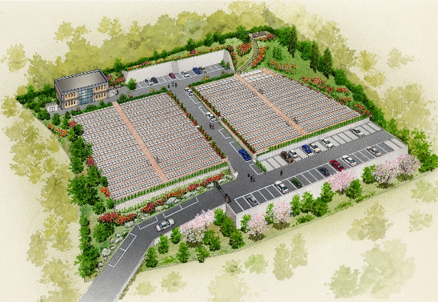 設備/管理棟(休憩室、トイレ、法要施設)、水道施設、駐車場他(100台)